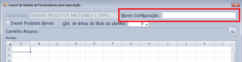 (4) Preencha o nome da configuração. Obs.: O nome é único para cada configuração, independente do fornecedor.