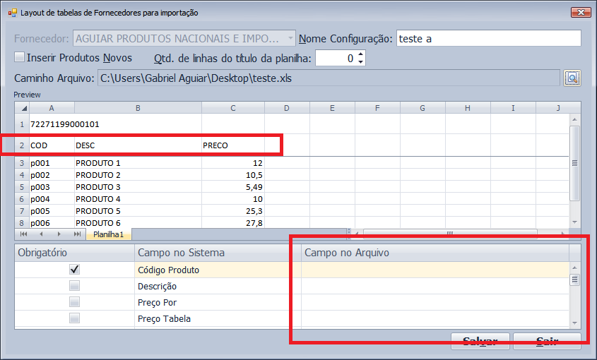 (10) Certifique-se de que o CNPJ do fornecedor consta no campo A1 da planilha.