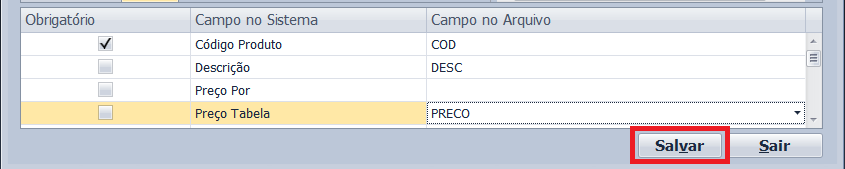 Obs.: Para que o sistema cadastre itens novos, marque a opção “Inserir produtos novos”.