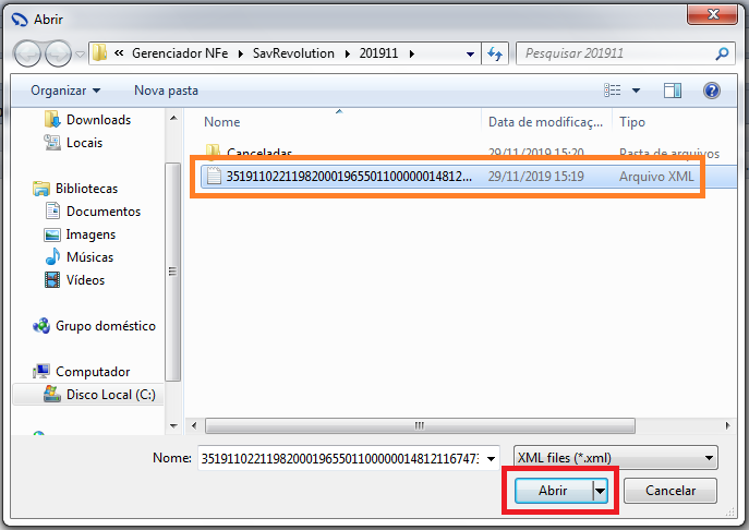 (3) Escolha o arquivo XML e clique em “Abrir”.