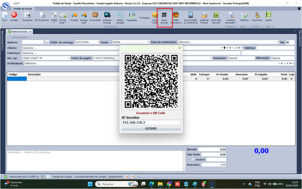 Entra no Revolution com usuário se senha entra na tela pedido de vendas e clique no botão Gerar QrCode.